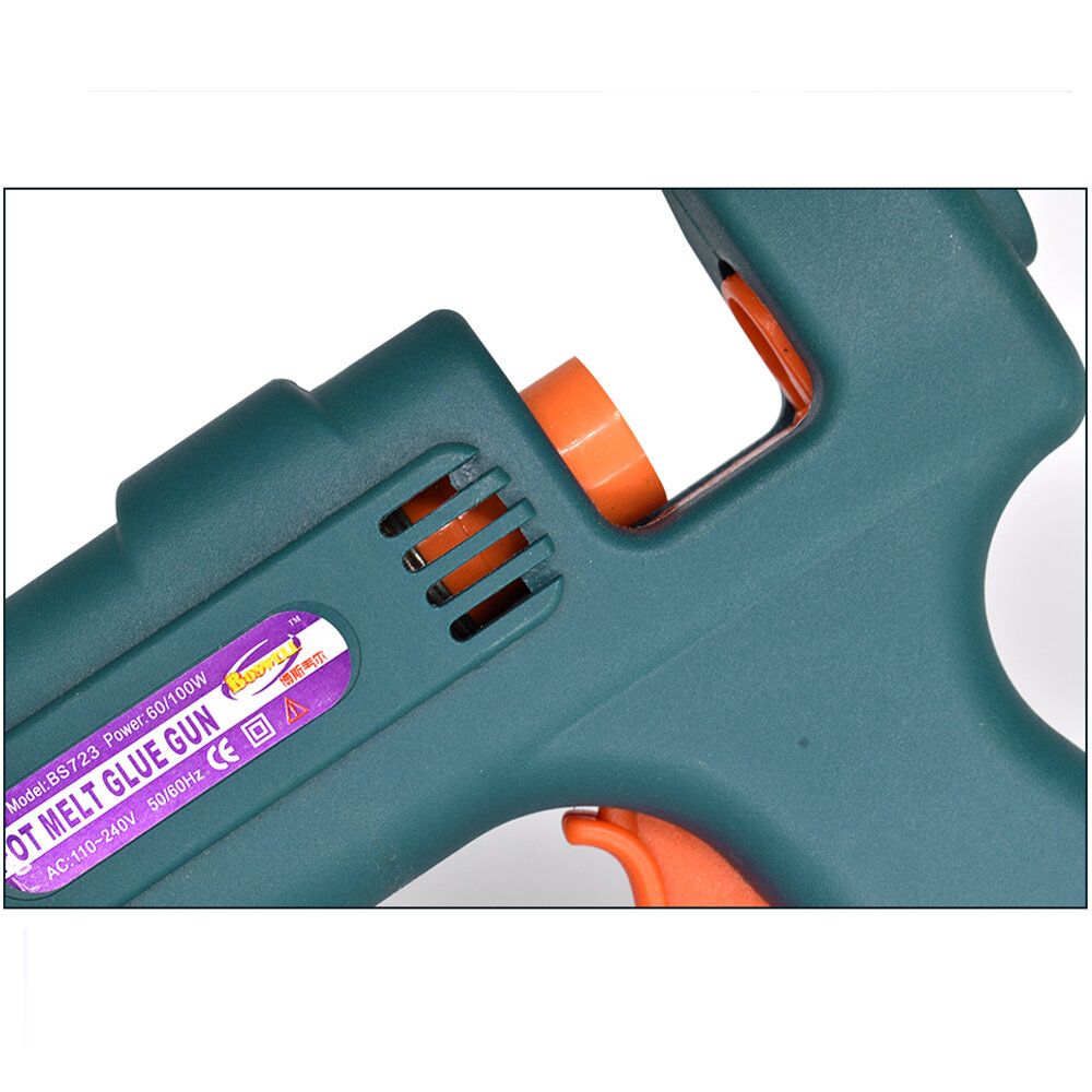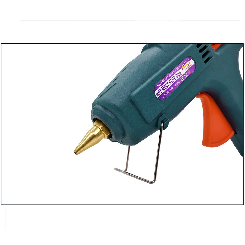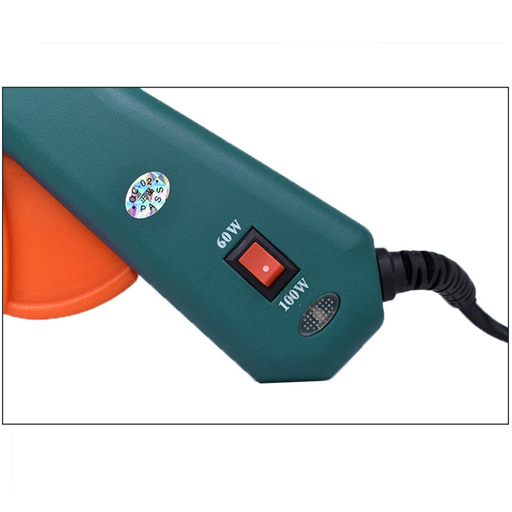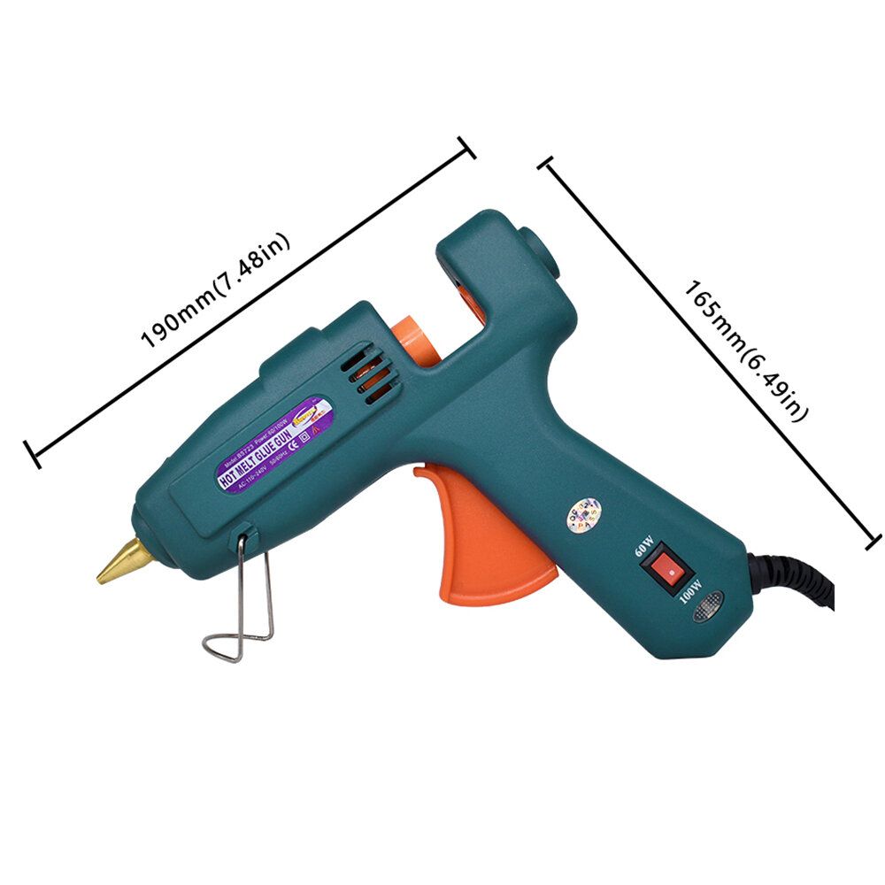 Heat Up Quickly-- Our hot melt glue gun adapt the 60/100W double power switch design, which can heat up faster ( only preheat for 2-5 minutes ), and you can adjust the watt level according to your craft needs, quite suitable for DIY lovers and even industrial use. No need to wait any more!High Safety Guarantee-- The glue gun uses ceramic PTC thermistor as heating element, heating up fast. When the temperature rises to the design temperature of the rubber gun, it will no longer rise, which can prevent the damage caused by overheating of glue guns, save energy and prolong the life of the gunSmart Design-- Comes with a stainless stand holder, make your hot glue gun quite stable in the process of using, which can effectively prevent the melt back to damage the gun. The copper hot nozzle can make you better control the glue in different area of usages. Please DON?ˉT touch the hot nozzle and glue when using.Widely Used-- With the cuspate mouth design of the melting nozzle, the hot glue gun can be widely used in home, office and industrial, mainly used for toy model, artificial flower, Christmas tree, fabric decorations, metal products, wood products, card paper, electronic circuit board and so on. Just enjoy your DIY talent on handicrafts and repair anything you want.Specifications: