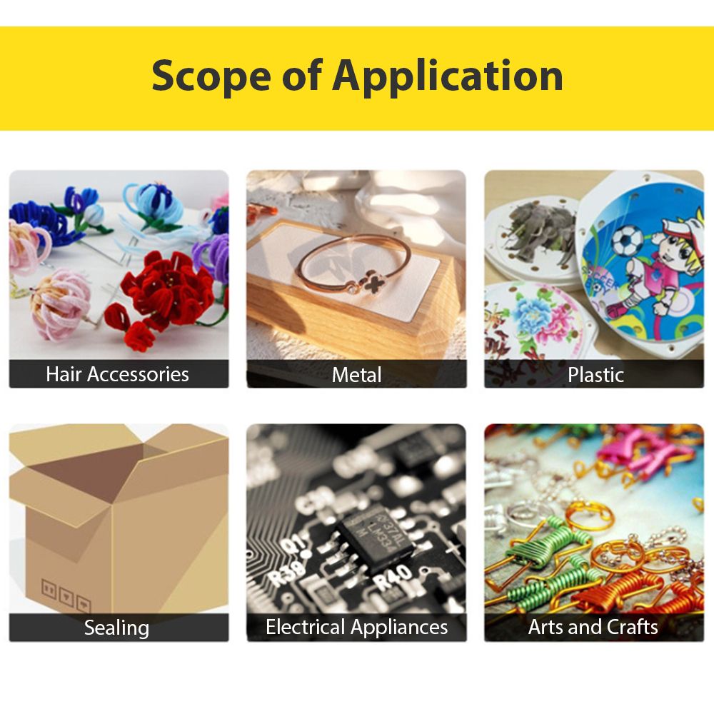 It is suitable for bonding hair ornaments, metal, plastic, handicrafts, electronic appliances, etc., can also be used to seal boxes.