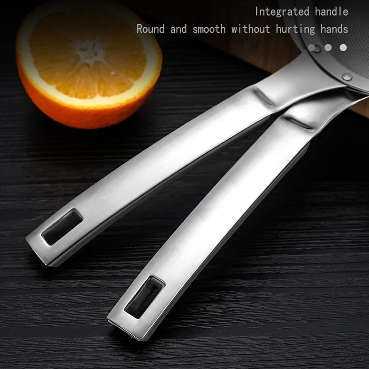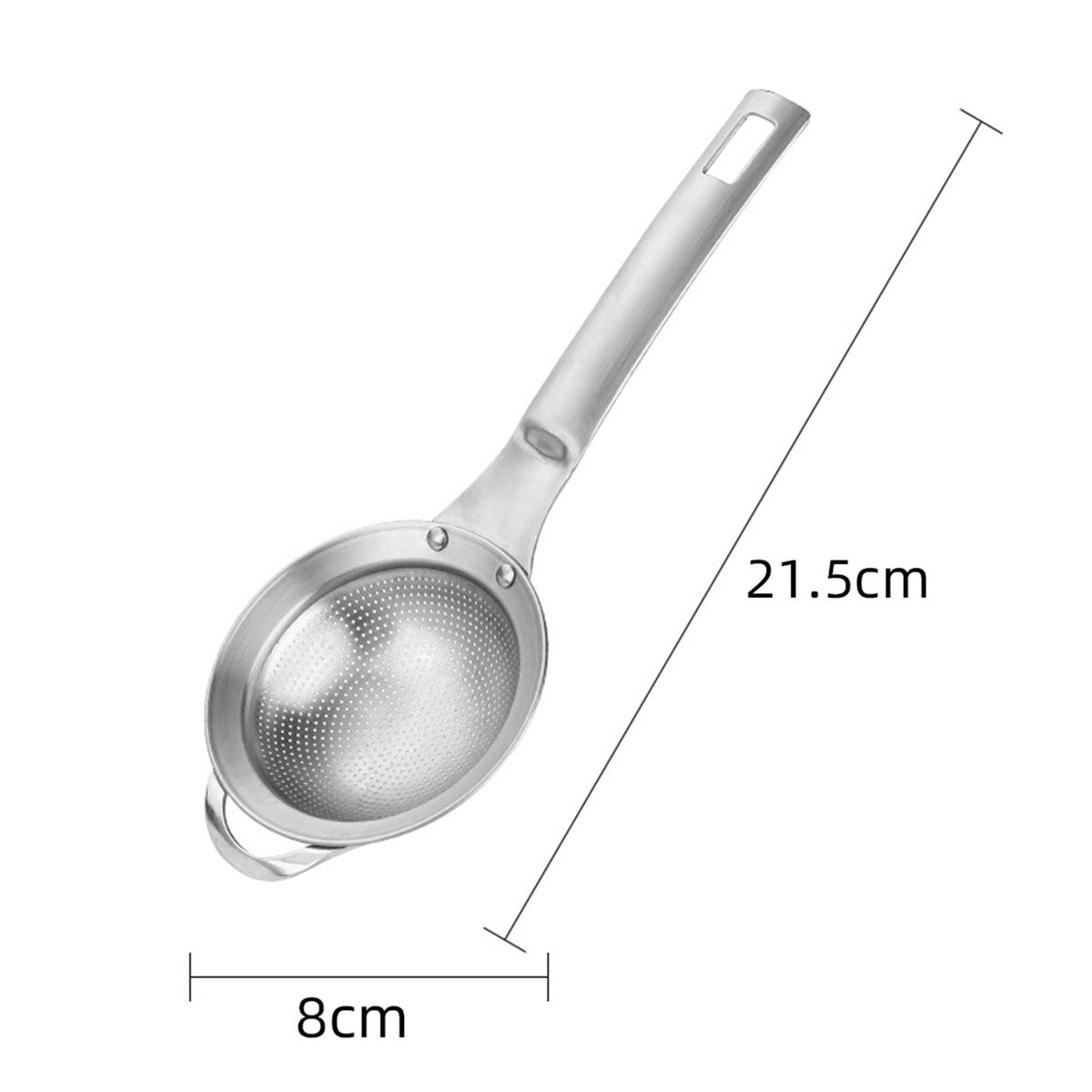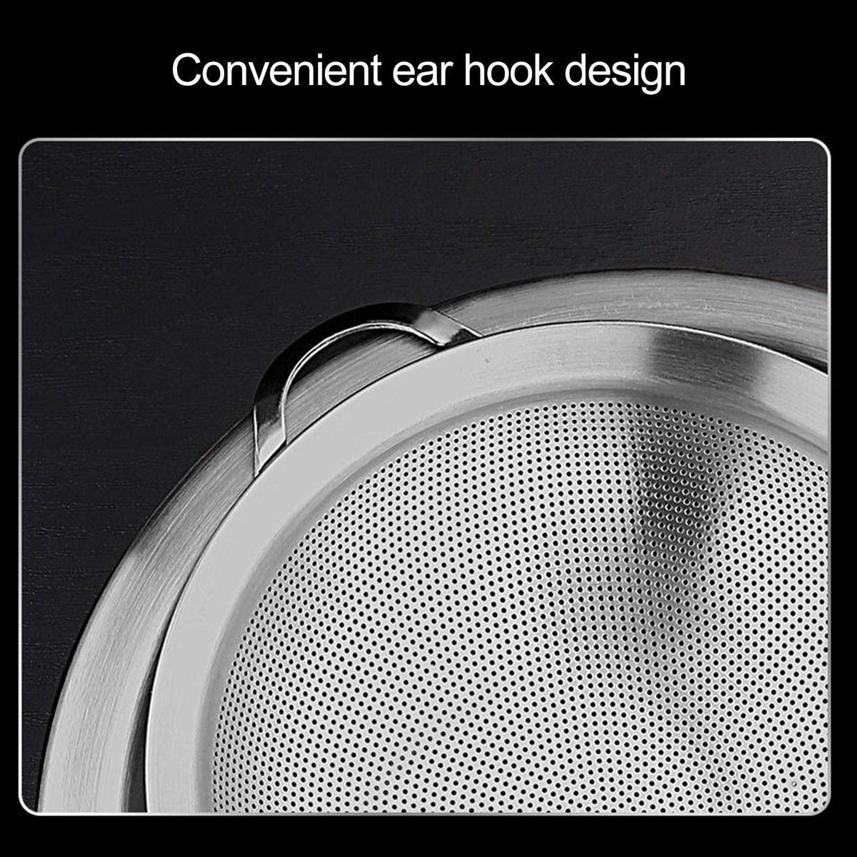 Equipped with a convenient hanging hole, this stainless-steel sieve can be hung on hooks after use, saving a lot of kitchen space and making your kitchen more tidy.