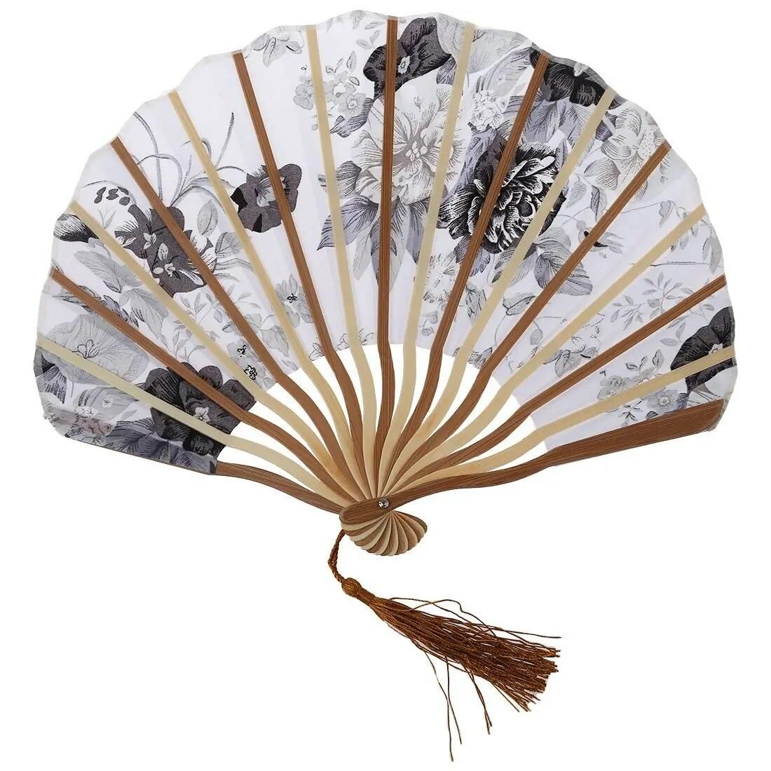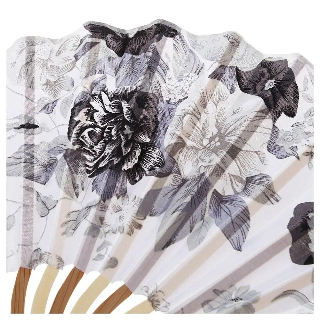 Buy Hot Sale Chinese Gray Peony Blossom Fabric Bamboo Folding Dancing Hand Fan White in Nigeria