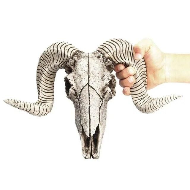 Buy Hot Sale Creative Resin Sheep Head Skull Head Wall Hanging 3D Animal Longhorn Sculpture Figurines Crafts Horns Home Decor Orna in Nigeria