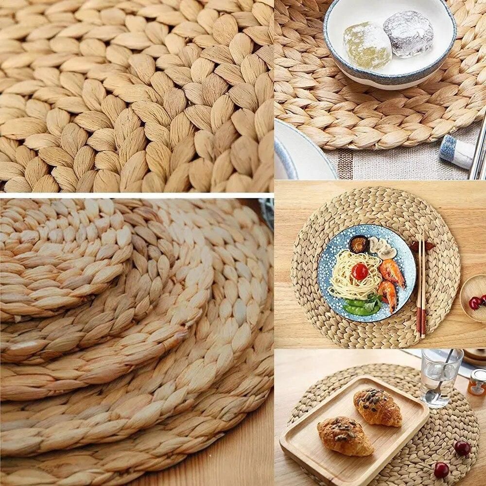 Buy Hot Sale Natural Handmade Straw Woven Placemat Wooden Round Braided Mat Heat Resistant Hot Insulation Anti-Skidding Pad Water in Nigeria