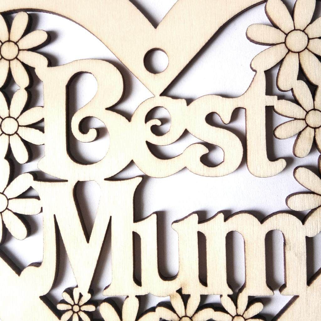 --A hollow out wooden heart plaque printed that is suited for the very best of mom.