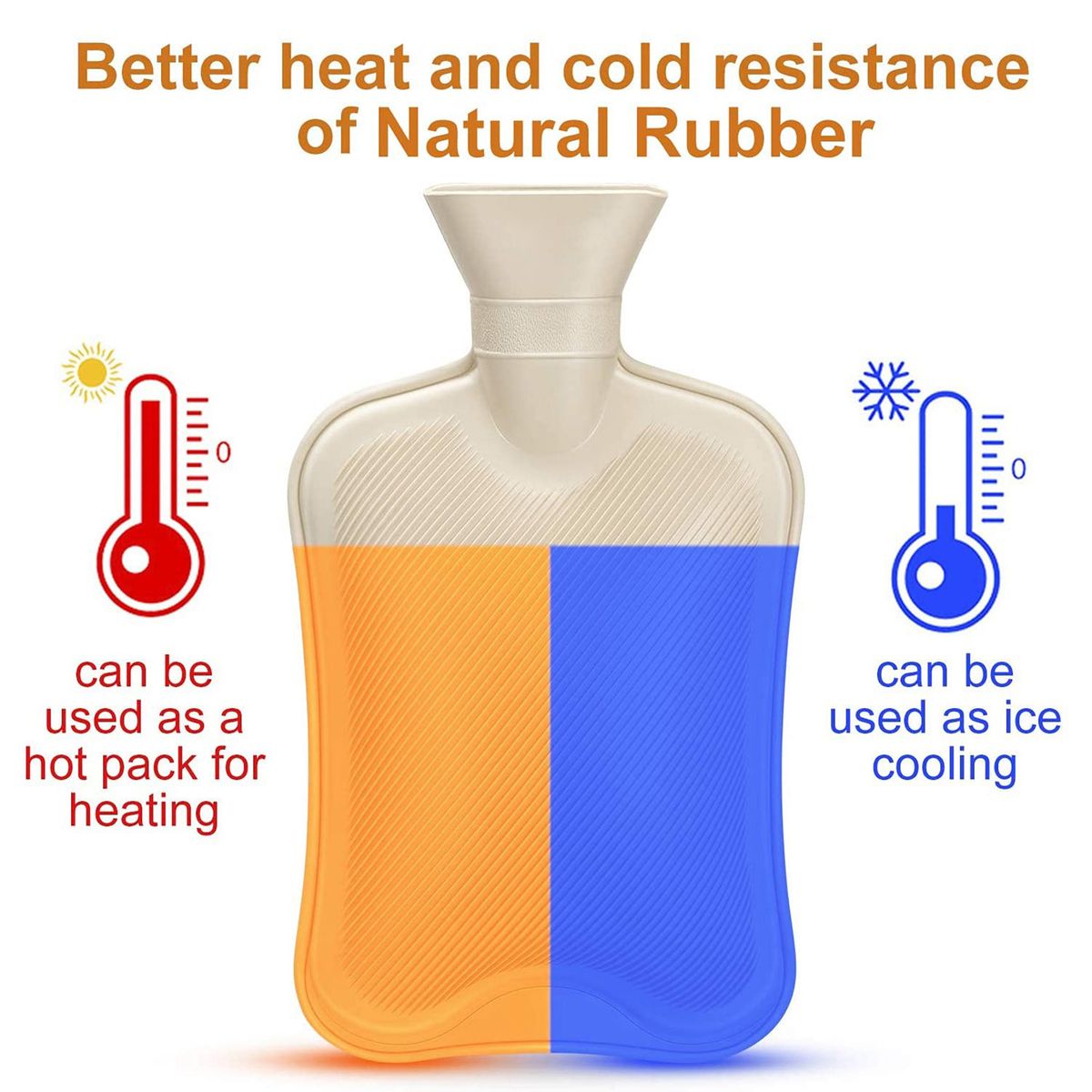 【Better Heat & Cold Resistance】Featuring better heat and cold resistance, the rubber water bag can be used as a hot pack for warming or a ice bag for cooling.