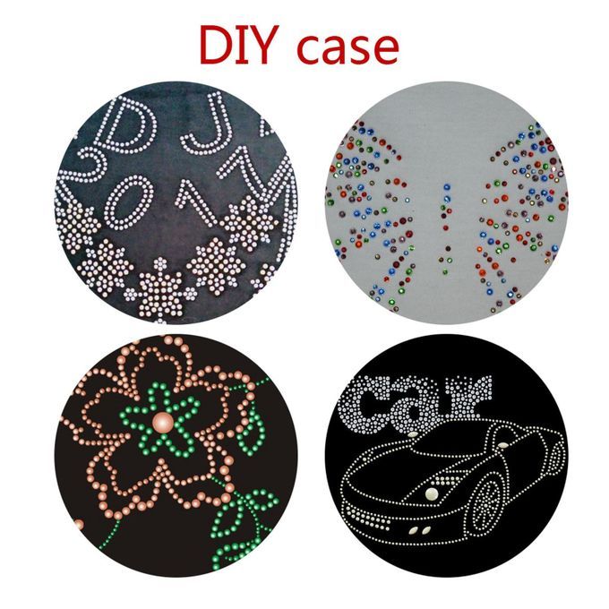 This is a DIY rhinestone applicator that can add sparkle rhinestones to your items including clothing, purses, cell phones, belts, dolls, scrapbooks and more.