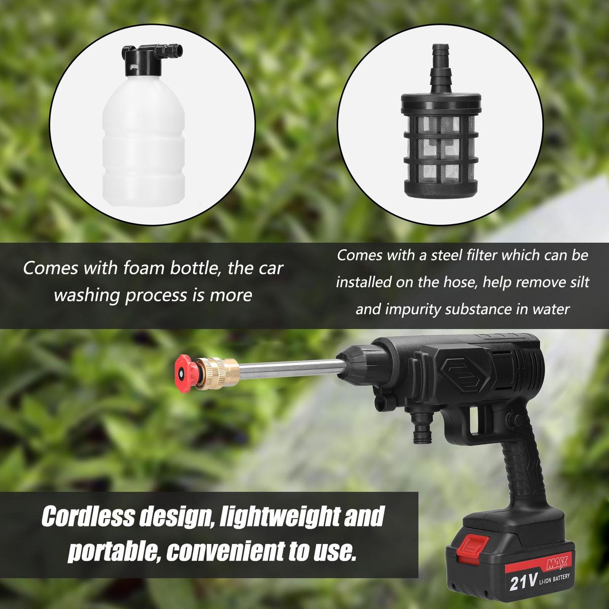 Buy Household Cordless High Pressure Car Wash Tool Portable Vehicle Cleaning Machine Automobile Washer with Foam Bottle in Nigeria