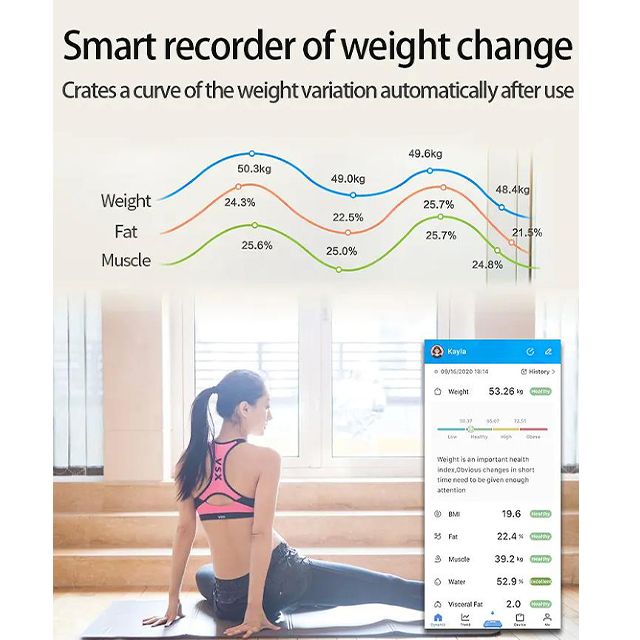 23mm ultra-thin body fat scale, max weight up to 396lbs/180kg.