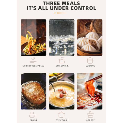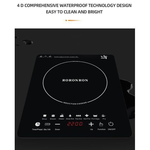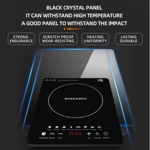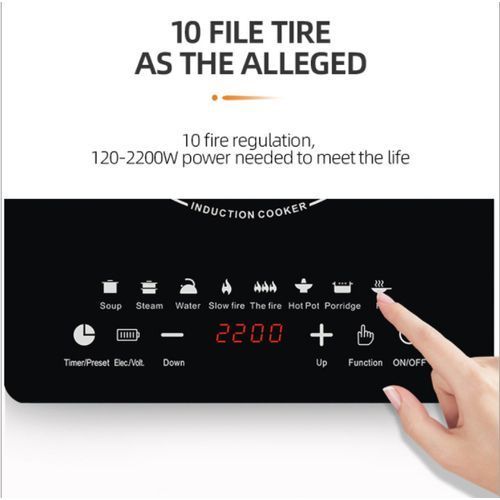 induction cooker operates in the power range of 100 to 2200 Watts with a power gain of 100 watts (20 power levels). This model operates in pulse heating mode for 900 watts of power, with 1000 watts and heating above constant. The touch control allows you to quickly adjust the heating temperature and set the timer.