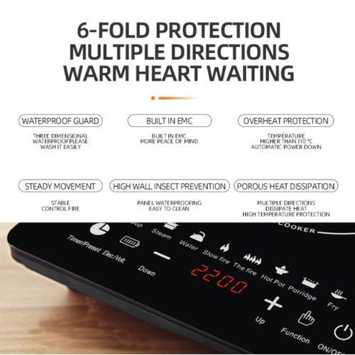 SecurityOne of the main advantages of electric front induction cookers is their safety.The protection of children. The buttons on the plate are easily blocked with a few clicks, which not only protects children, but also easily wipes the touch screen from dirt without turning off the device.Device heating level. The induction cooker, unlike the electric, heats the dishes themselves, not their own surface.Integrated cooling system. The fan has enough power to constantly cool the appliance, even if cooking takes several hours in a row.Automatic shutdown. The induction cooker recognizes the absence of dishes and also switches off automatically when heating empty containers.The plate withstands severe power outages. The device handles runs in the range of 110-220 V.is completely flame retardant and protected from moisture and dust according to the IP-32 standard.