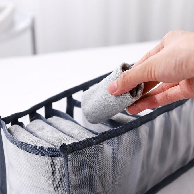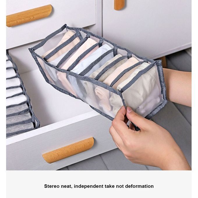 Description:* Breathable underwear storage box: separate underwear and socks to avoid crossing, and hygienic storage (tidy and hygienic) *6 compartment storage box: designed for bra storage, prevent entanglement, deformation, clean and dustproof *One grid, one object, clean and hygienic, transparent separation, easy to pick up *With clever use of storage compartment, there is more than enough storage capacity for daily underwear *Three-dimensional and crisp, independent handling without deformation *Using high-quality fabrics, washable without odor *Detailed display: 1. The inner grid is heightened and widened, and the capacity is upgraded; 2. Fine workmanship, smooth routing; 3. Three-dimensional crisp, not easy to deform; 4. Fine mesh, strong and durable.Specifications:Name: Honeycomb compartment Color: black, gray, beige Product category: storage bag Shape: cube Material: nylon mesh Function: bedroom storage Use environment: storage of underwear, underwear and socks Style: simple and modernPackage Included:1*Storage bagNotes:1-2cm error might exist due to manual measurements, please kindly understand. The colors deviation might differ due to different monitor settings. We provide you with the best product and service. If you have any problem, please let us know, and we will solve the problem ASAP. Thank you so much. Shipping and Packaging All items will be double checked and well packed before sending.Items will be dispatched within 2 business days after buyers pay for the order. It usually takes about 14 to 18 working days for delivering the package to the destination(for remote areas,it may take a little longer). Special Announcement:Please fill in the correct and detailed consignee, address and phone number in the order. For fast and correct delivery.If you do not receive order within 30 working days,please feel free to contact Customer Service before leaving Negative and Neutral Feedback, we will do our best to help you resolve the problem.TaxNo, you will only pay what is quoted as total cost at checkout, no more. You are not expected to pay any additional duties or taxes. If you are asked by Customs or our logistic partner to pay duties, please contact our Customer Service .ReturnIf the product is not on good condition, You can return this product within 14 working days, please contact customer service center before returning.FeedbackYour satisfaction is our first priorityIf you receive the order and it is in good condition,we would be grateful if you would leave us 5 star Positive Feedback for the transaction.
