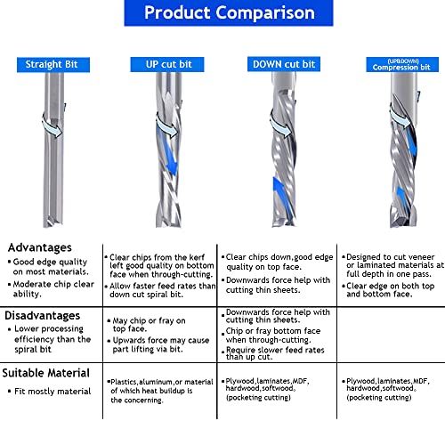 - Clean Cut & Exellent Edge-Grinding: The design of flutes, larger ral hip spae of CNC Router Bit makes non-stik rumbs, smokeless, odorless and silent during proessing, smooth utting and fast hip-removal