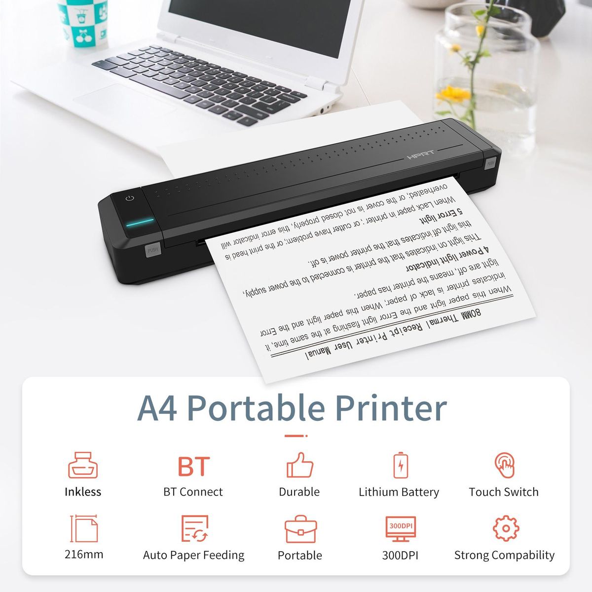Buy HPRT MT800Q A4 Portable Thermal Transfer Printer Wireless&USB Connect with Mobile Computer Support 8.5'' x 11'' US Letter for Office School Car Travel Printer with 1pc Ribbon Roll Compatible with Windows System Inkless Printing PDF File Webpage Contract P in Nigeria