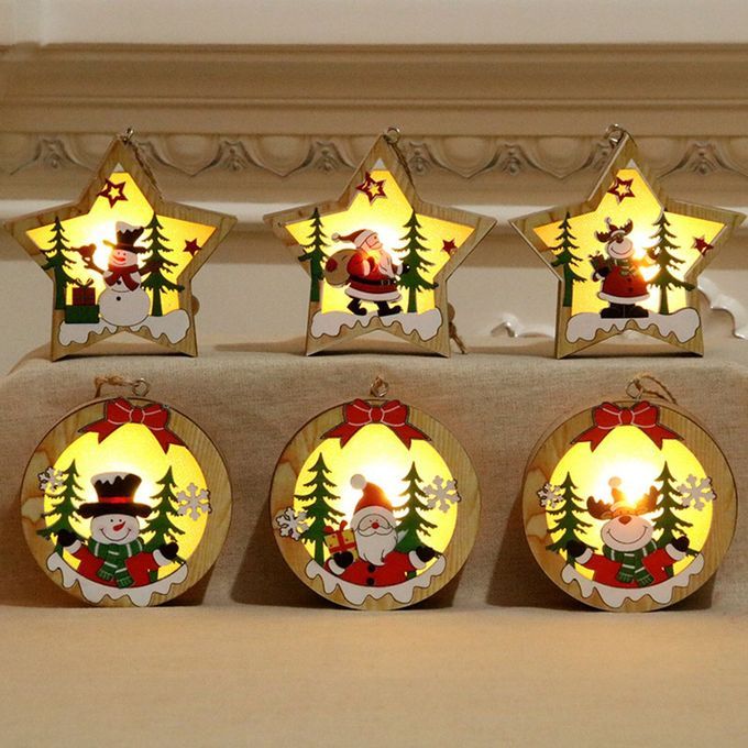 Hristmas Portable Deli Ate Hristmas De Oration Wooden Lighting Pendant-colorful-Five-pointed Star