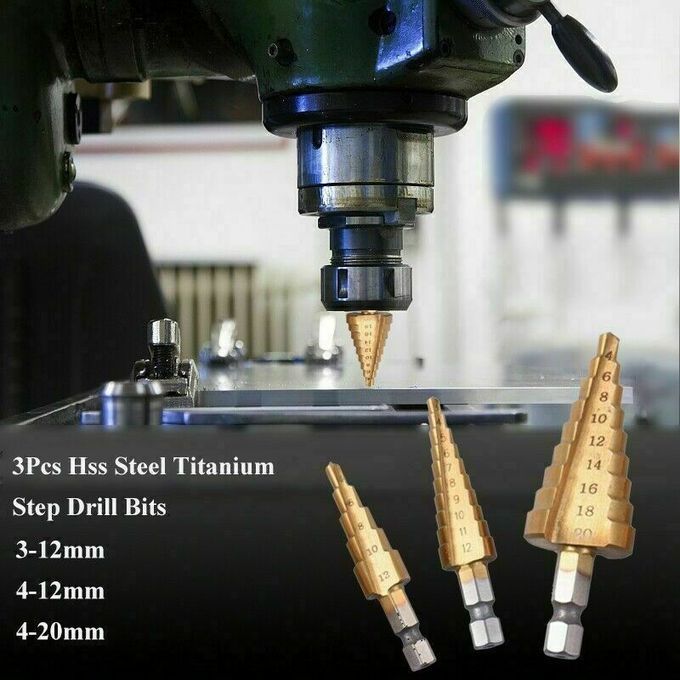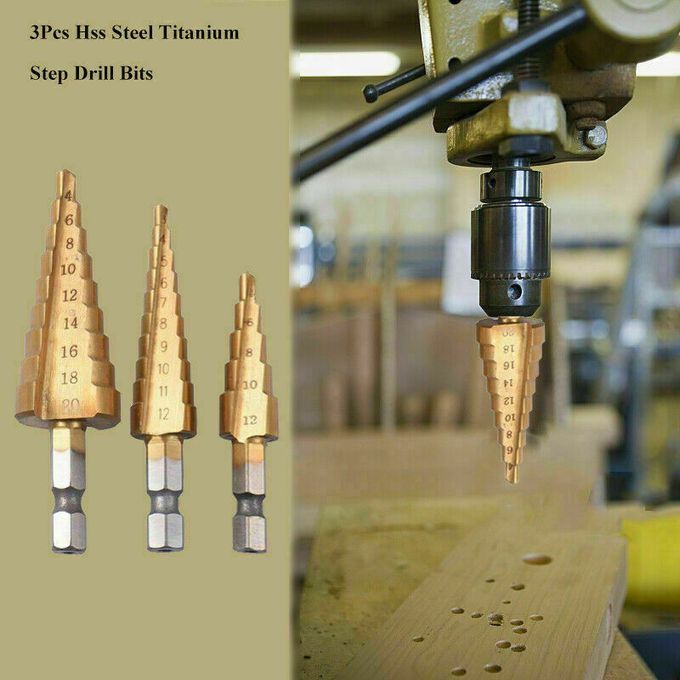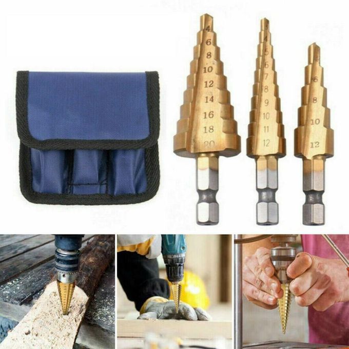 3 pieces HSS Step Drill Bit 1 piece canvas bag