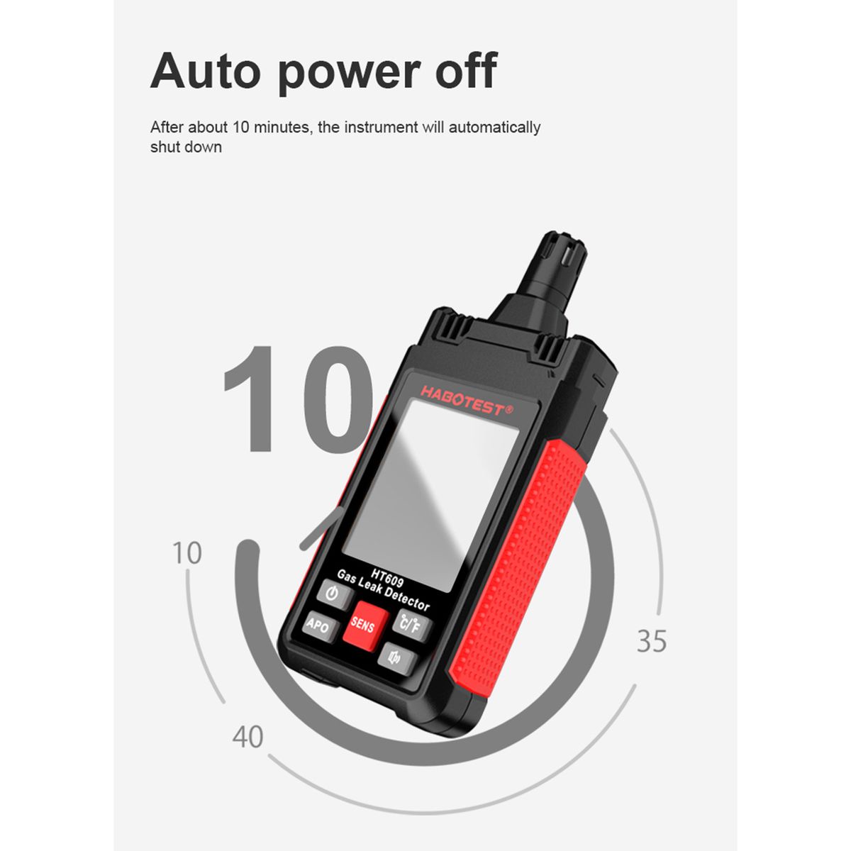 4. Auto Off: When no operation within 10 minutes, no detection signal, the instrument will automatically shut down.