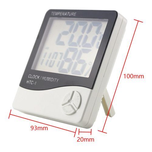 Indoor Large Screen LCD Electronic Temperature Humidity Digital Weather Station Alarm Clock HTC-1. This indoor ultra-accurate hygrometer/temperature monitor is perfect for helping create a healthy environment or maintain plants health. It can record the highest and lowest temperature/humidity, set a daily alarm, and display time/temperature/humidity with a wide temperature measuring range.