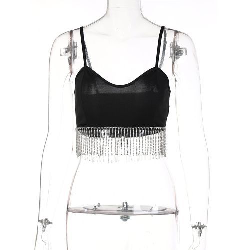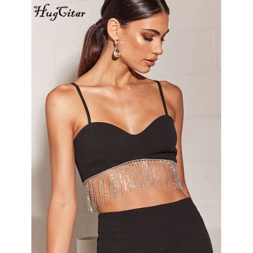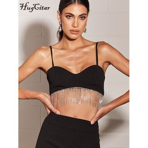 Buy Hugcitar Solid Strap Slip Tassel Drawstrings Revealing Crop Sexy Skinny Camis in Nigeria