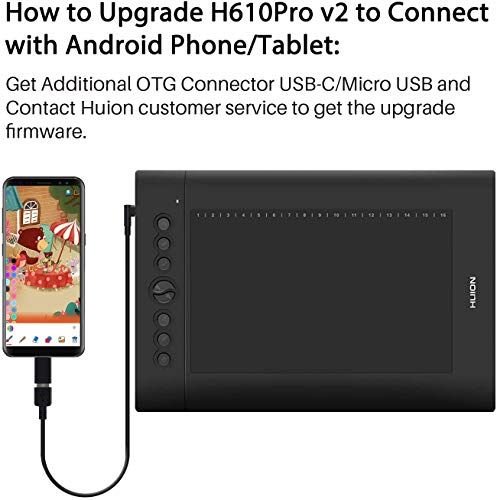 - Drawing On-the-go: Huion H610PRO V2 omputer graphi tablet is not only support OS Android /laptop onnetion, but also maOS 10.12 or later and Windows 7 or later. Design to play the OSU! Game or a mouse replaement and input devie for use in digital art workstations.