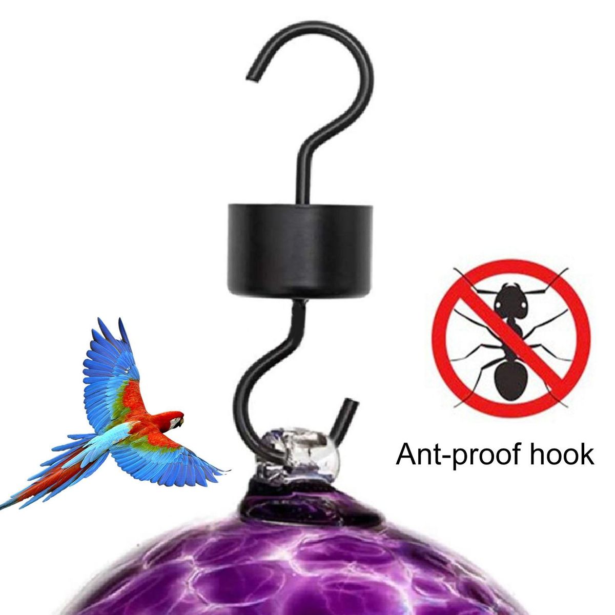 A hook is easy to use. By pouring a little water into the disc and hanging it on the feeder, ants can be prevented from crawling to the feeder, and you can get rid of ants when feeding birds.