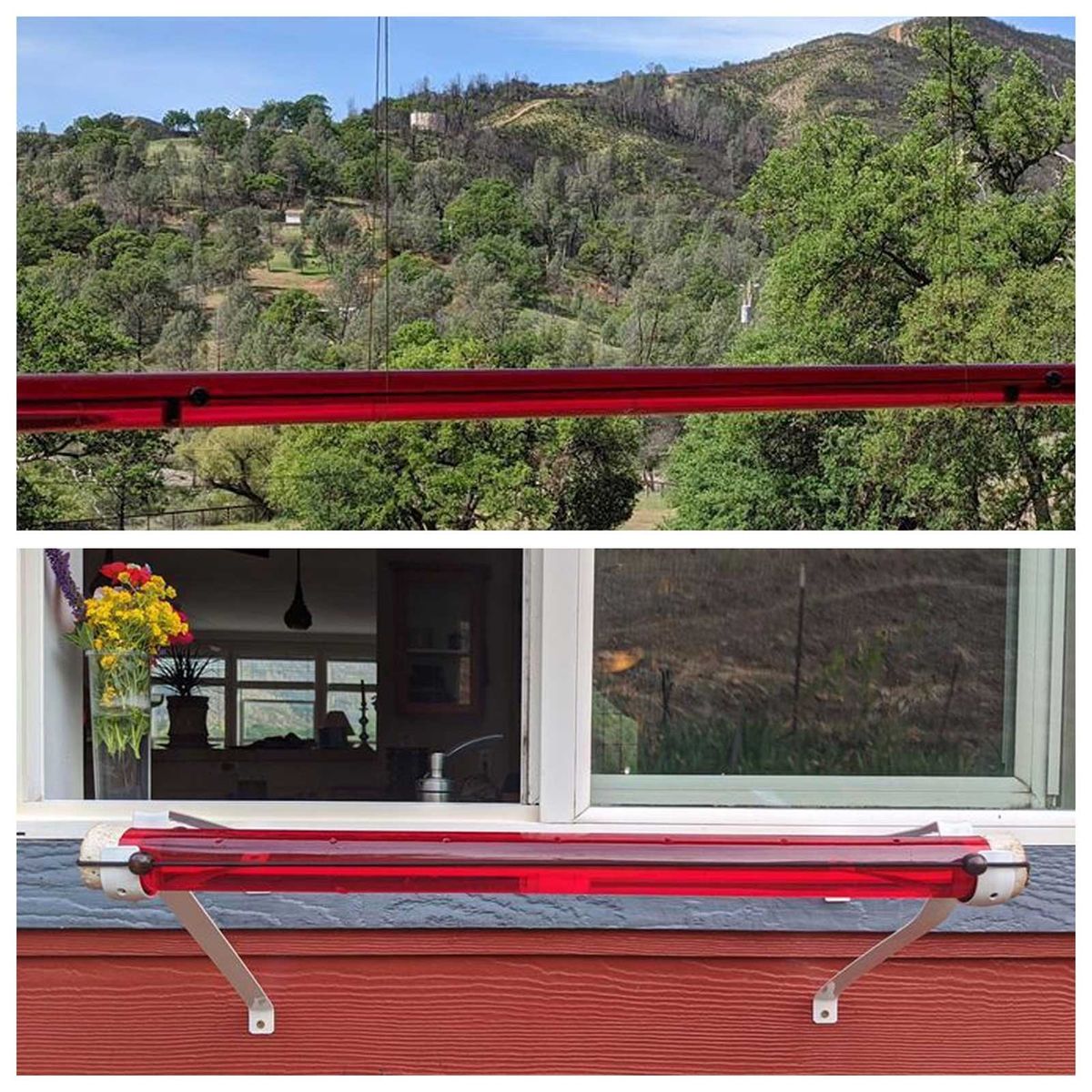 Outdoor hanging-feeder can be installed with shepherd\\\'s hooks or mounted below a window with closet rod brackets.