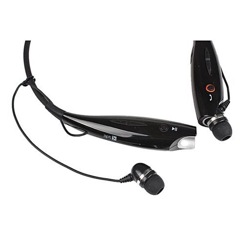 Magnetic ear buds snap into place when not in use; music controls on neck strap.