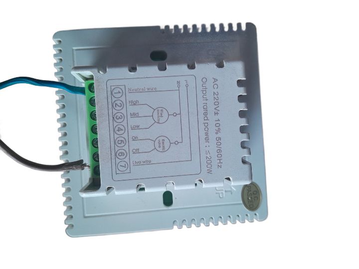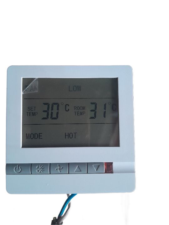 high quality digital thermostat 220 vac 10amps relay current capacityON and OFF power button3 fan speed ( high med and low )2 temperature display ( set temperature and room temperature )easy to install ( wall mount )hot and cold mode