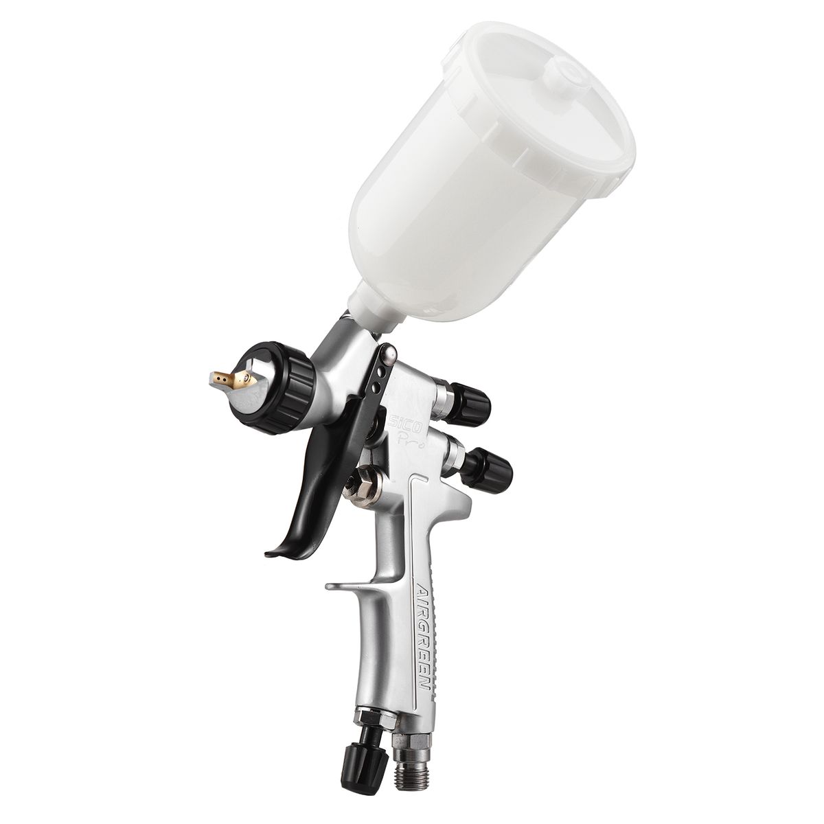Gravity feed HVLP air spray gun with 1.0mm spray nozzle can provide 360 deg; uniform and fine spray (rotate manually), with high efficiency, saves paint and money.