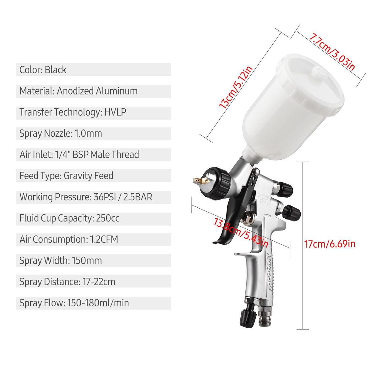 Buy HVLP 1.0mm Air Spray Gun Kit 250cc Fluid Cup Gravity Feed Air Paint Sprayer Mini Handheld 360-degree Paint Spraying Gun for Car Repair Furniture Surface Wall Painting DIY Models in Nigeria