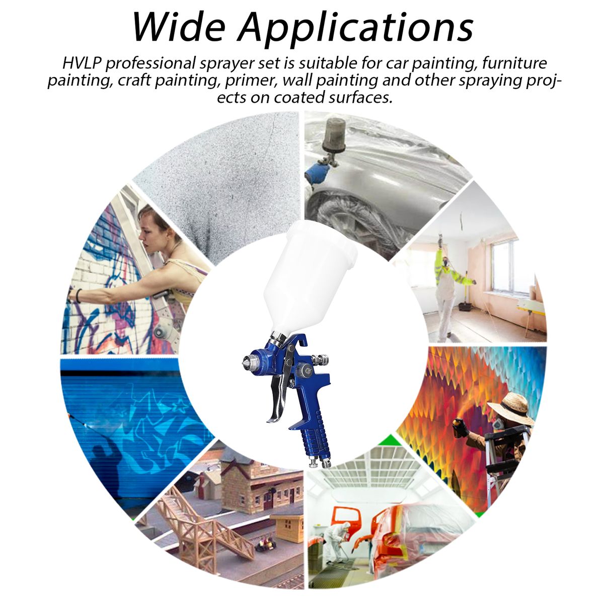 Wide Applications: HVLP professional sprayer set is suitable for car painting, furniture painting, craft painting, primer, wall painting and other spraying projects on coated surfaces.