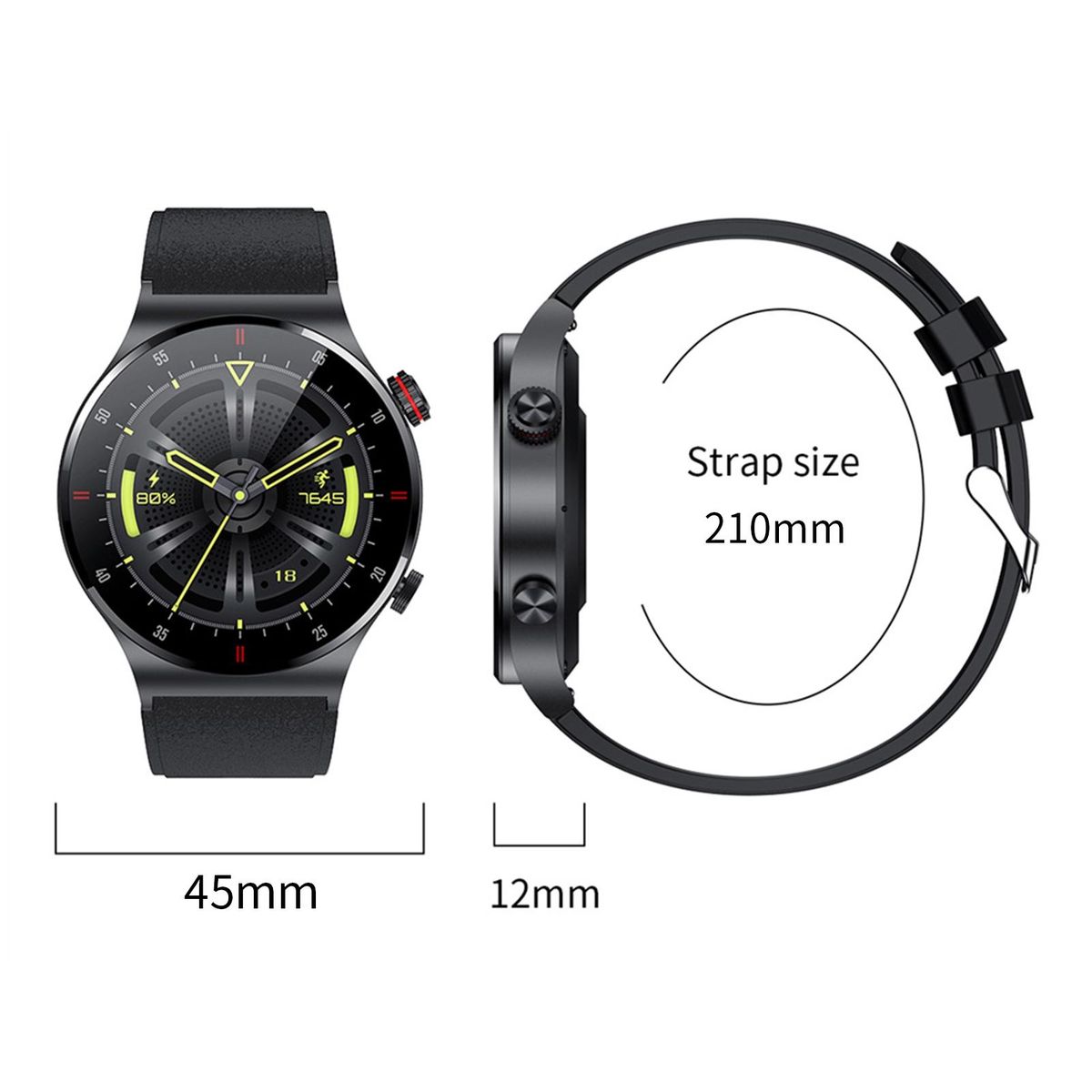 This smart watch has the following functions: BT call, multiple sports modes, real-time heart rate measurement, sleep monitoring, step counting, information reminder, moving location, sedentary reminder, weather report and so on.