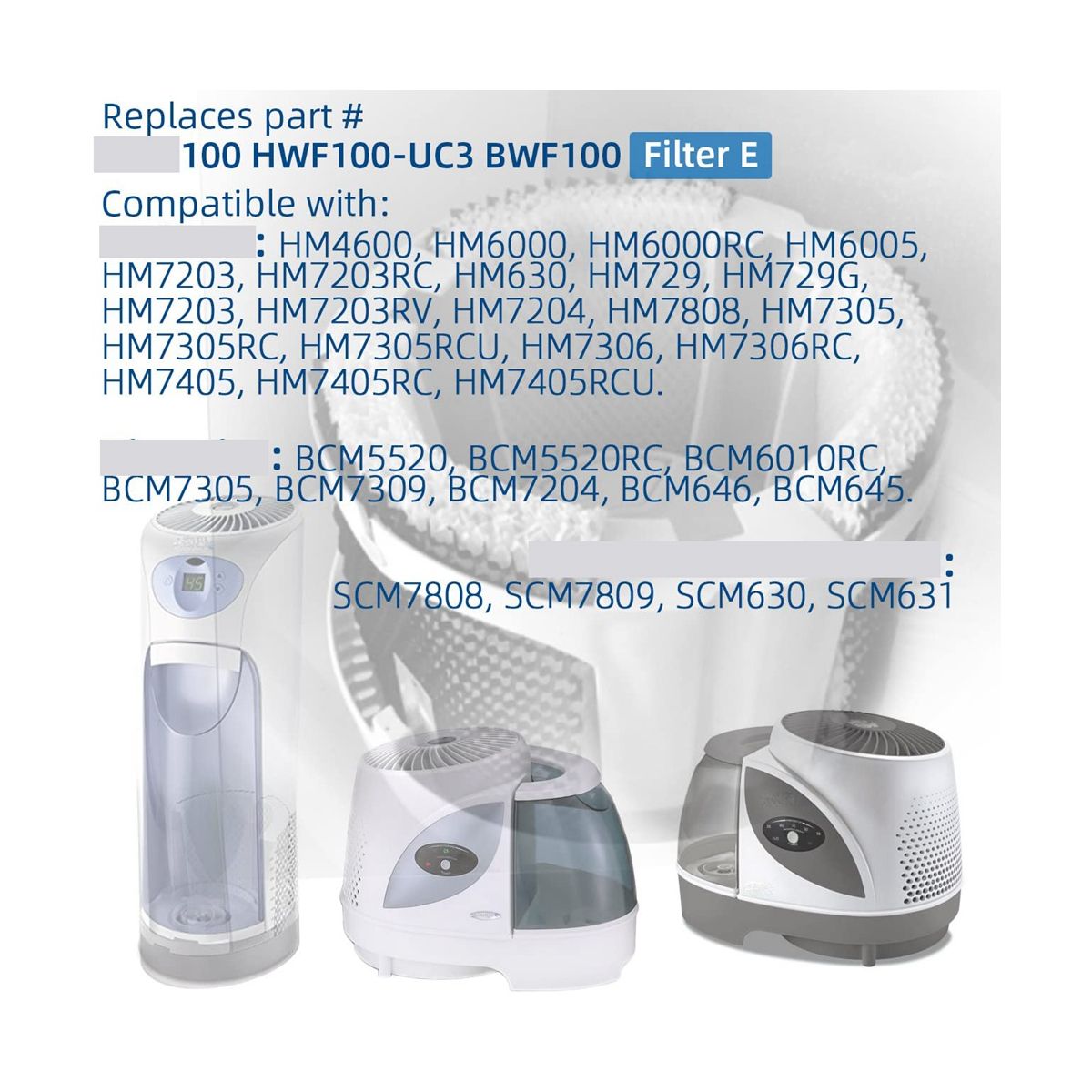 Detailed Information About The Product:Compatible with: Holmes "E" Filter for the Humidifier model HM630, SCM630, BCM646, HM7808, SCM7808, BCM7205, HCM730, BCM7305, HCM729G