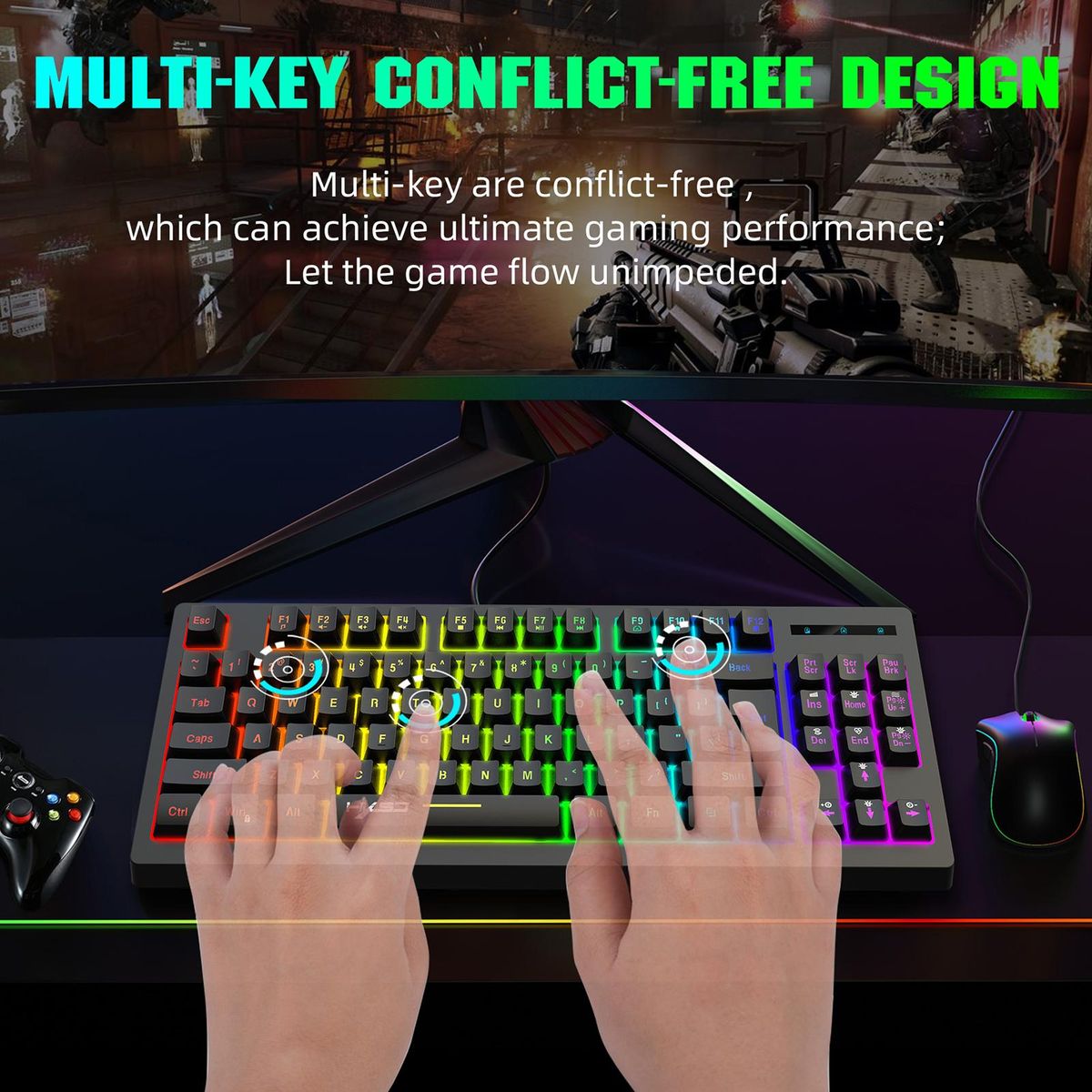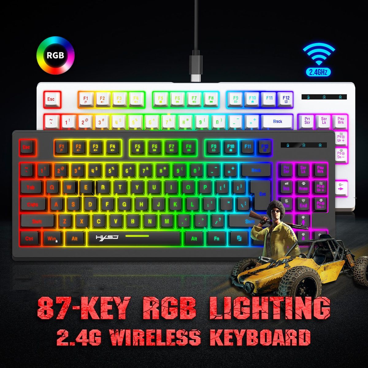 Buy HXSJ L100 2.4G Wireless Membrane Keyboard 87 Keys Layout RGB Light Effect ABS Key Cap Built-in 1800mAh Lithium Battery White in Nigeria