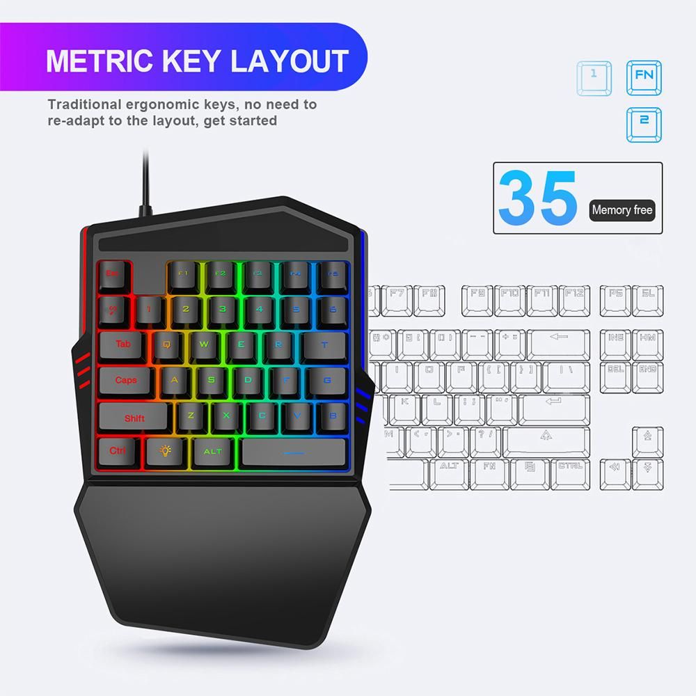 Buy HXSJ One-handed Membrane Keyboard 35 Keys with Backlight Single Hand Gaming Keyboard Ergonomic Design and Anti-ghost Button in Nigeria