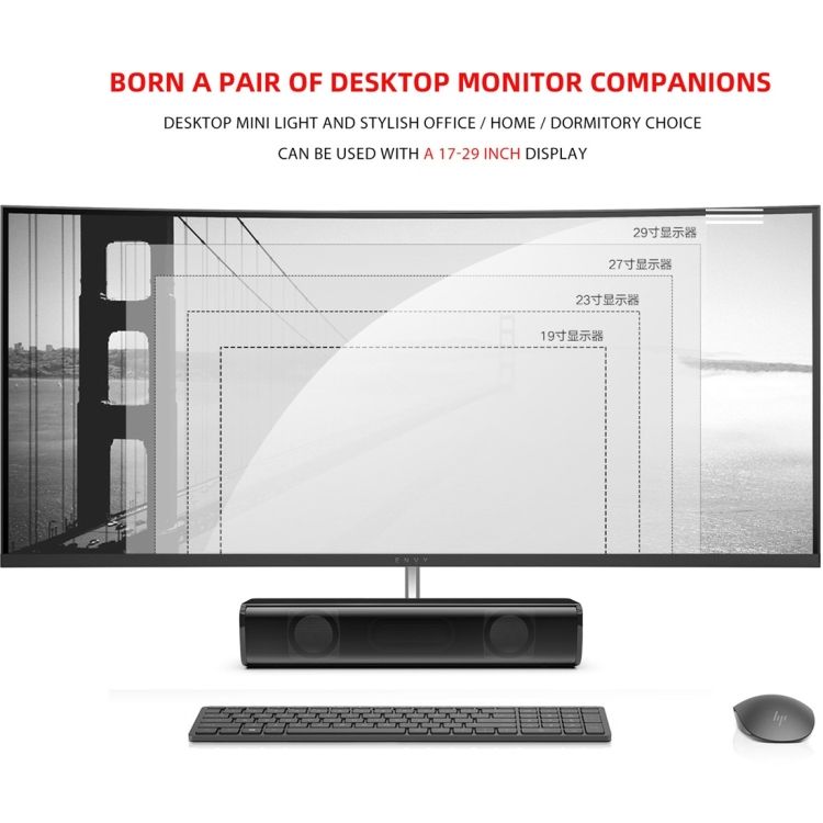 1. Mini strip speaker, small body and large space: does not occupy the desktop space, small and simple.