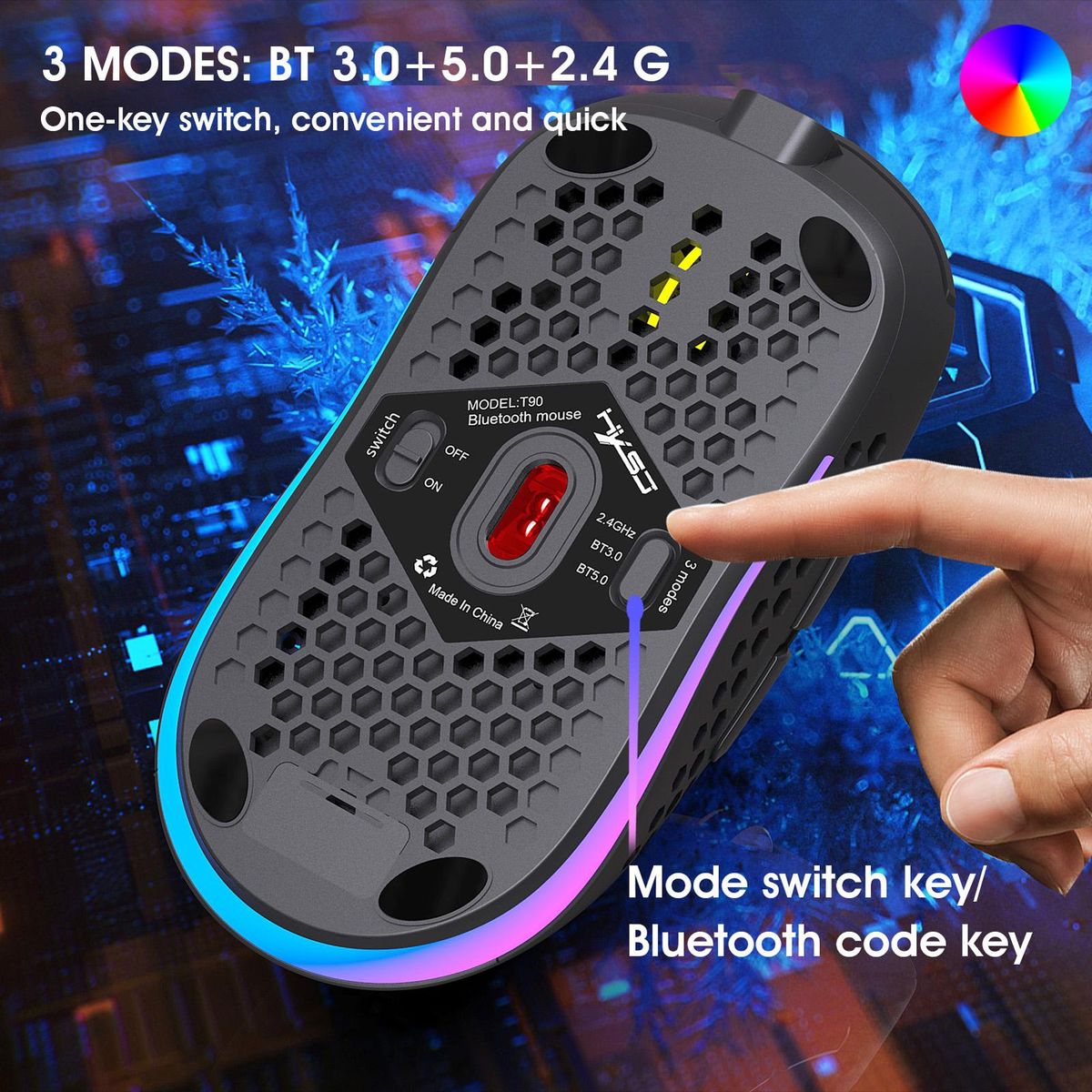 Buy HXSJ T90 Three Mode Wireless Mouse BT 3.0 + 5.0 + 2.4G Wireless Charging Mouse RGB Lighting with Adjustable DPI Black in Nigeria