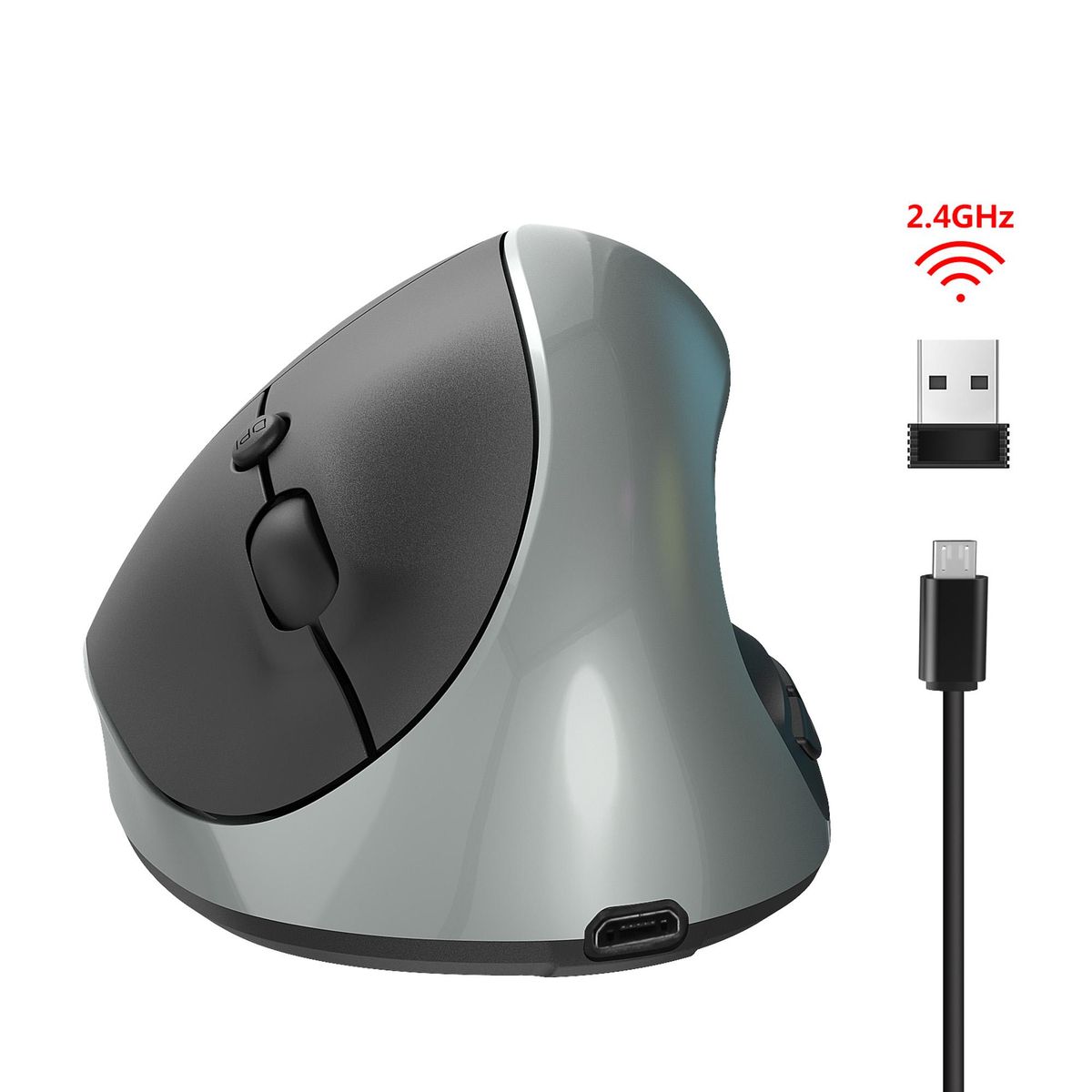 Buy HXSJ X10 2.4G Wireless Vertical Mouse Ergonomic Mice 3-gear Adjustable DPI Built-in 600mAh Rechargeable Lithium Battery Grey in Nigeria