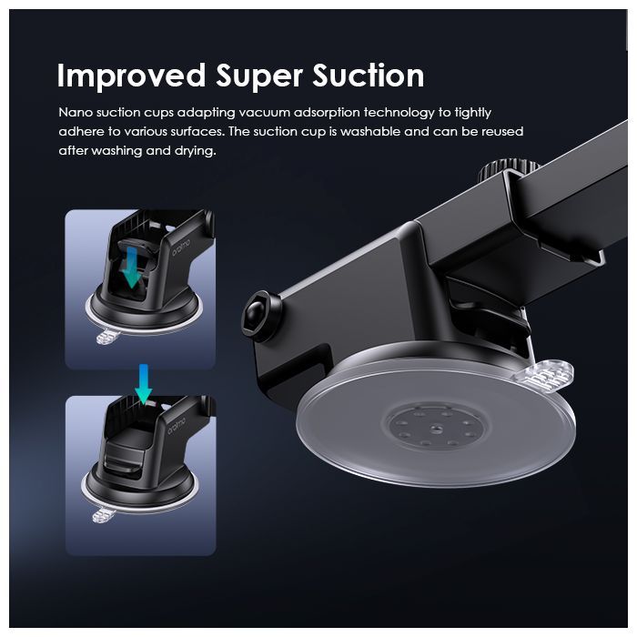 Nano suction cups adapting vacuum adsorption technology to tightly adhere to various surfaces. The suction cup is washable and can be reused after washing and drying.