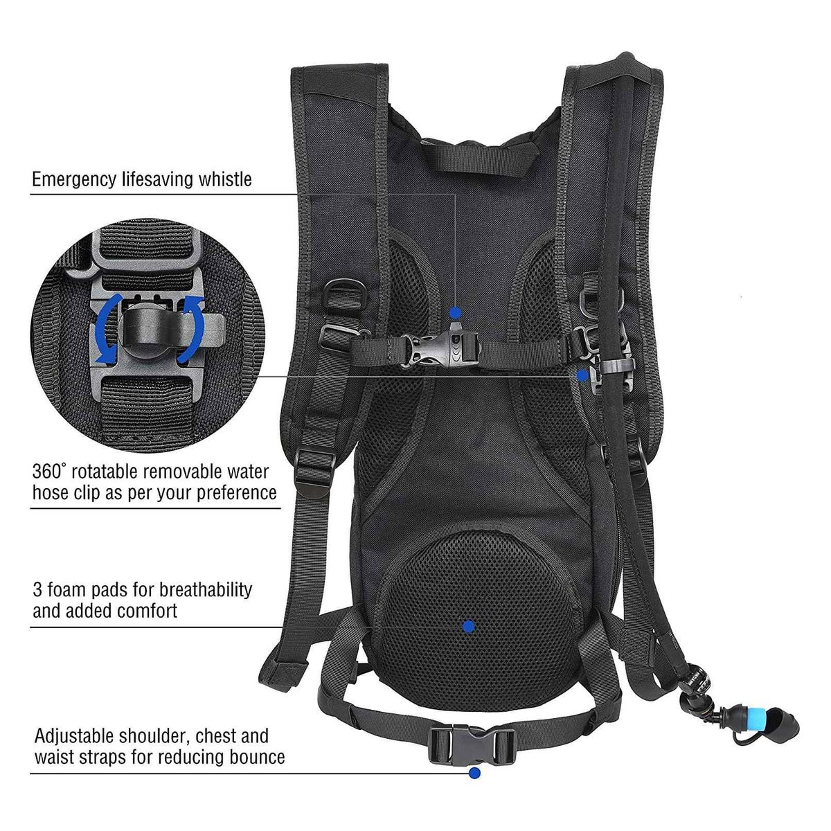 Professional 3L Hydration Bladder: Quick release valve allows you to refill water without connecting hose. Large opening is easy to clean and add ice cube. 360 degrees rotatable mouthpiece allows for easy drinking. Shut On/Off valve helps to adjust water flow. Middle baffle keeps the bladder flat and makes it easier to place into the backpack.