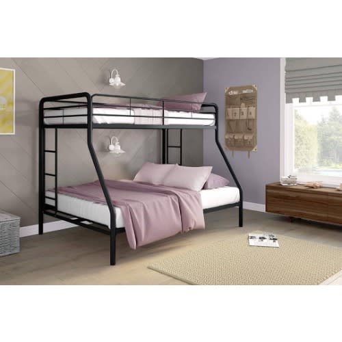 This is also a best-selling product.This bed is custom-built to your specification by artisans in Richmond, Virginia. USA. The bunk bed frame is ideal for both children and adult use. It has a sturdy metal frame equipped with a ladder for easy access to the upper section of the bed. The bed measures 3ft at the top and 4.5ft at the bottom (width). Both top and bottom bunks measure 6ft (length). When fully setup, the height is about 5ft. The upper section is equipped with strong rails to prevent roll over during sleep. The Paris sleeps a full length single mattress on top along with a double bed on bottom. The metal bunk is finished in silver and features a ladder which connects the top bunk to the bottom. A mesh base completes the bed which provides great mattress support. The product comes in many small components, which permits easy dismantling, assembly and transport.