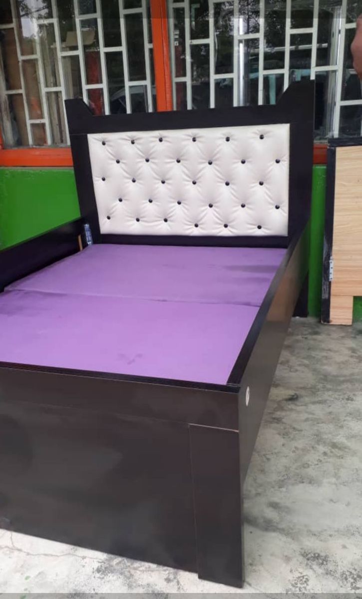 Transform your bedroom into looking classy and homely with this brown 6(length across) x 6 (length from headboard to footboard) feet size bed. Comes with 2 detachable bedsides. Mattress and lamp is not included.