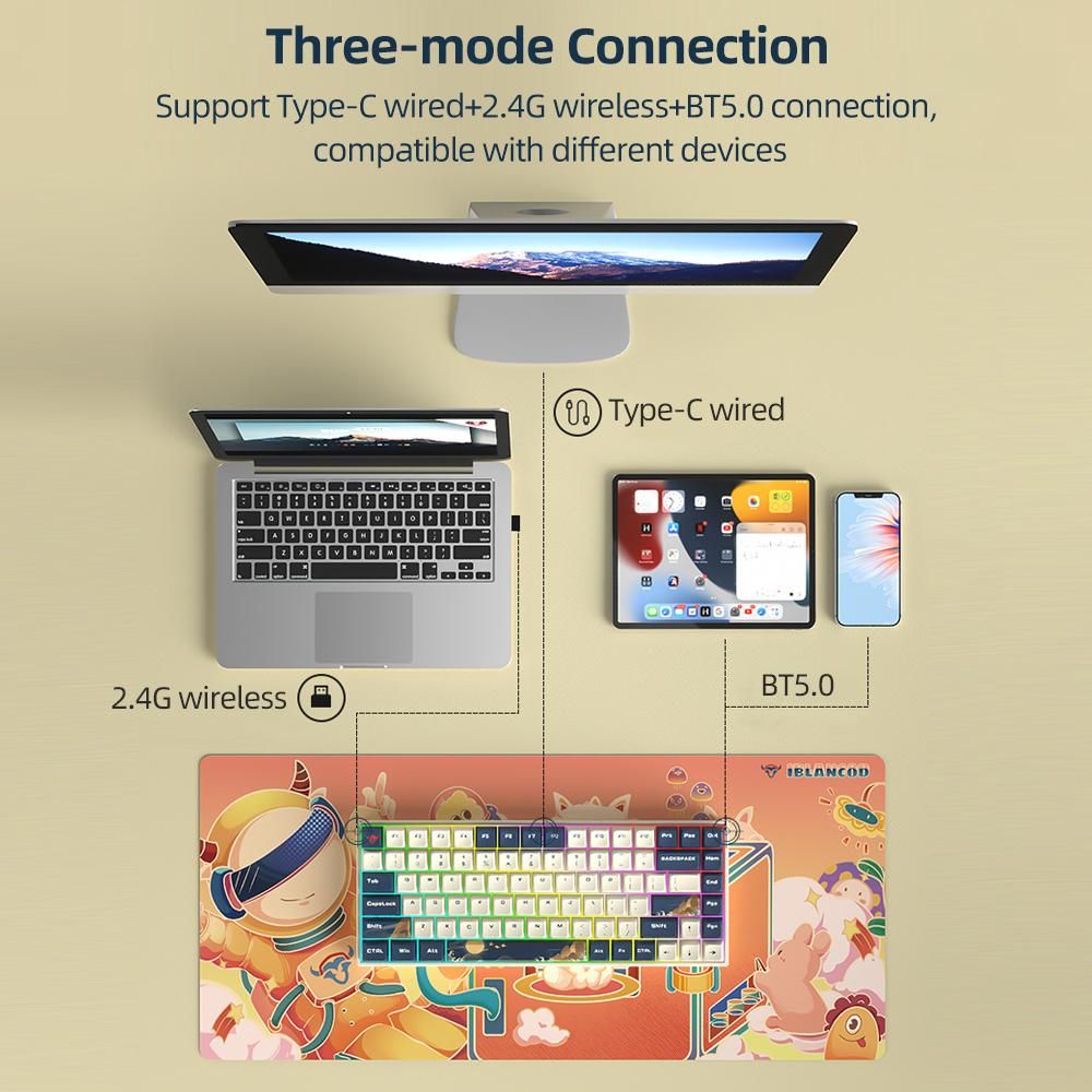 Buy iBlancod K84 84 Keys Three-mode Mechanical Keyboard BT5.0+2.4G+Wired Connection PBT Keycaps Blue (Gateron Silver Switches) in Nigeria