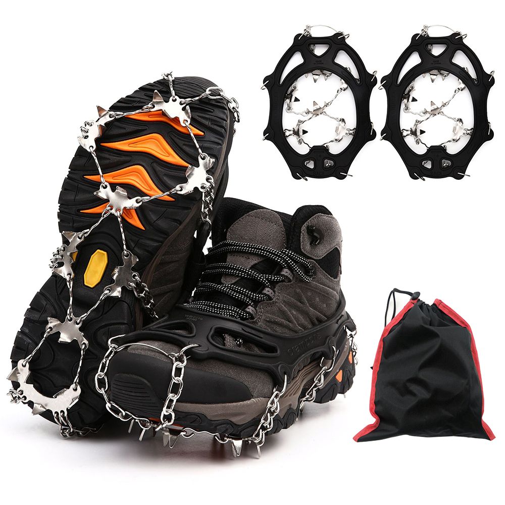 Upgraded Thickened Stainless Steel Spikes: Each crampon is equipped with 26 teeth and a strong chain system, providing excellent traction on various terrains.
