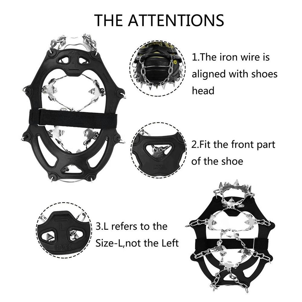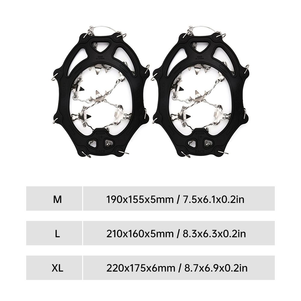 Features:Upgraded Thickened Stainless Steel Spikes: Each crampon is equipped with 26 teeth and a strong chain system, providing excellent traction on various terrains.