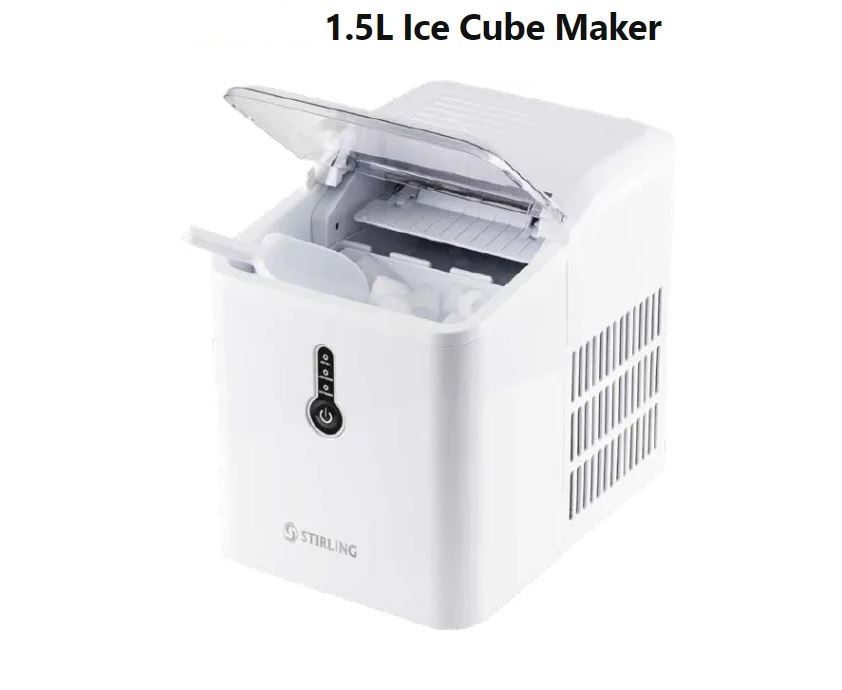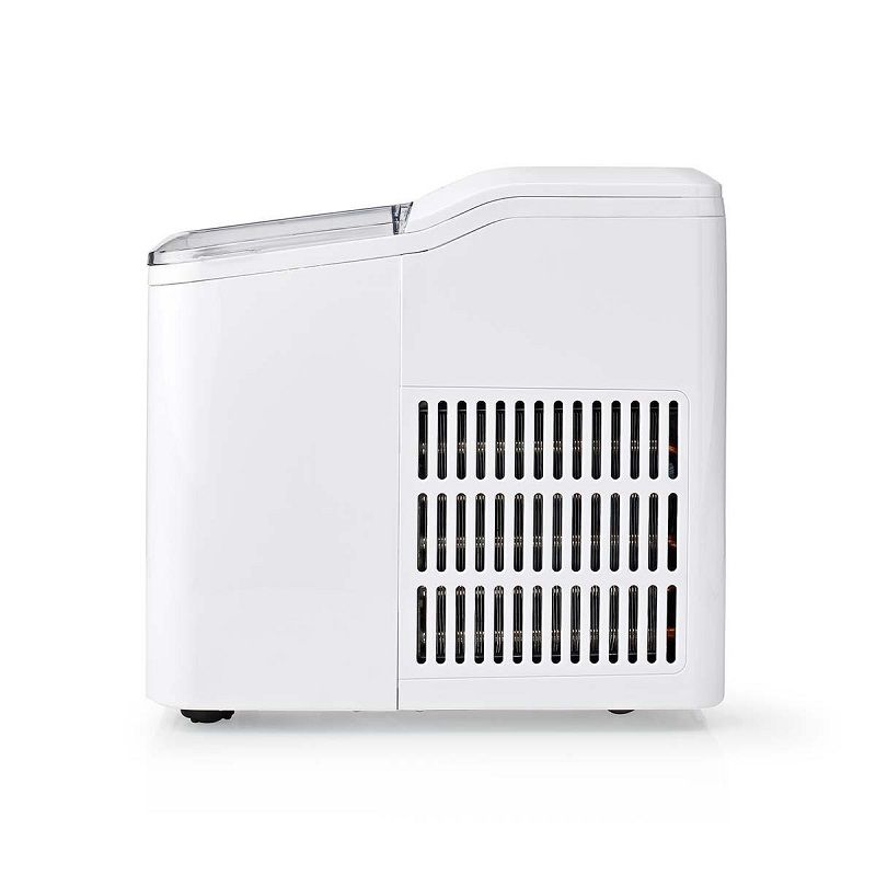 This stirling ice cube maker has a compact design but still a water capacity of 1.5 L to provide ice cubes for cold drinks whenever and wherever you need it. Within only 8-10 minutes your ice cubes are ready for use. The maximum 'ice-making' capacity in 24 hours is 12 kg. When the basket is full, the ice cube maker has an indicator light that indicates if when the ice basket is full, but also if you need to add water will indicate this, and also if you have to add water. This ice cube maker is very user friendly, first you put water in the reservoir then you turn the ice machine on, after it is on the machine will automatically pump the water into the water collector. The cooling down phase now begins, after about 7 minutes, the first 9 cubes take shape on the pins, which are above the collection tray. A short thaw phase begins to let the ice cubes fall. The tilting tray will now tilt the remaining water back into the reservoir and push the ice into the collection tray. When it is done, the cycle starts all over again.