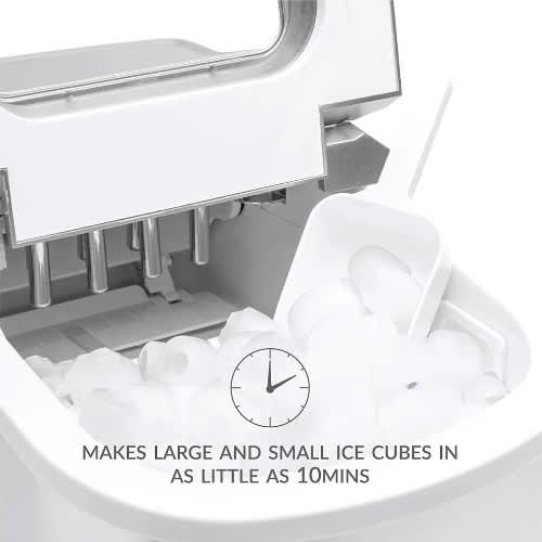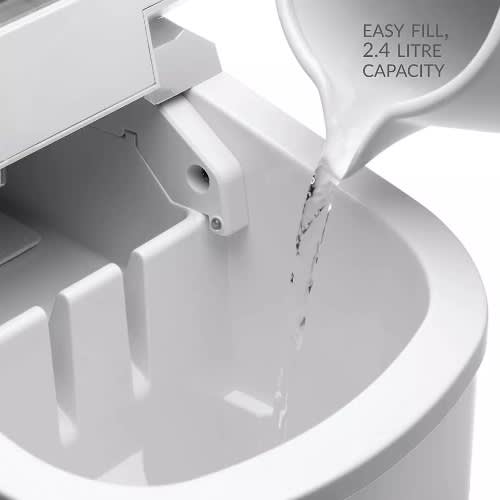 This brilliant high capacity ice machine is now updated and has an even more precise electronic control system and VFD indicator to make even greater quality ice. How many times have you found empty ice trays in your freezer just when you need a nice cold drink? Who was the last person who forgot to refill the ice tray! Never have a home ice argument again thanks to this brilliant ice machine... It can store a large quantity of ice (1.5kg) due to it's insulated design and warns you when water is low or even the storage tank is full. It's the perfect ice maker machine for the office, home, patio, and all round entertaining. We tested a number of Ice making machines before opting to stock this model. Why is this ice maker better than the competition? It has a very easy to use control panel, is compact in size, produces more ice cubes in less time than any other model we tested, and does not require any plumbing in at all. Just hook it up to the mains, fill it's water compartment, and the ice machine will produce its first batch of ice in only 10-15 minutes (quickest we found in the UK). It can make ice in three different size, and the quality of the ice is very good indeed. Also, it can make about 12-15kg of ice in 24hours which is also very fast for counter top ice makers. It also features a handy side drain plug to easily empty any unused water after use. This saves you having to scoop any unused water out compared to models that do not have this feature. This ice makers ability to make a large quantity of ice makes it perfect to use for parties throughout the year, and is ideal for both home or professional use.