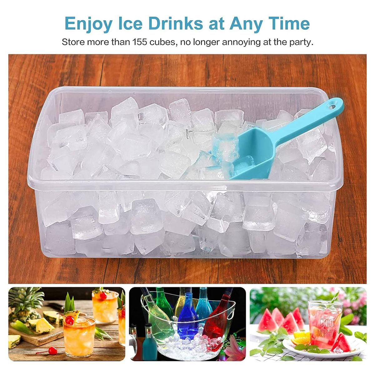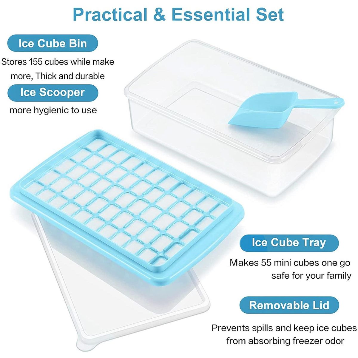 Durable Ice Cube Tray and Ice Bucket: 55 mini ice cube trays use better materials and designs to make them more durable. No longer worry about breaking easily. Start to use them to enjoy ice drinks time!