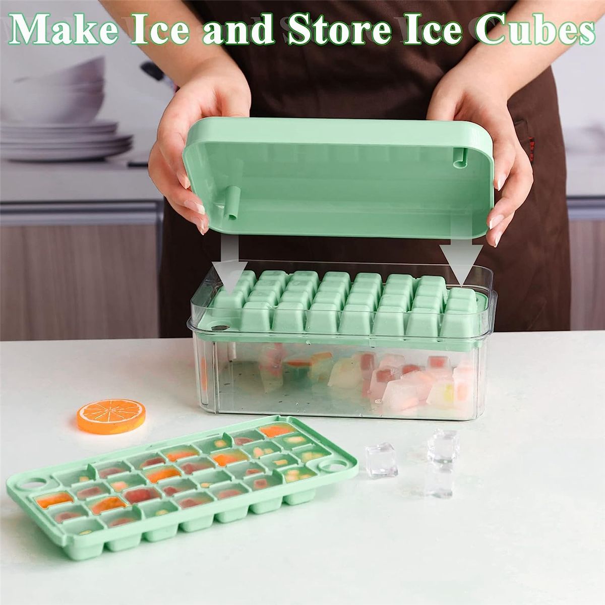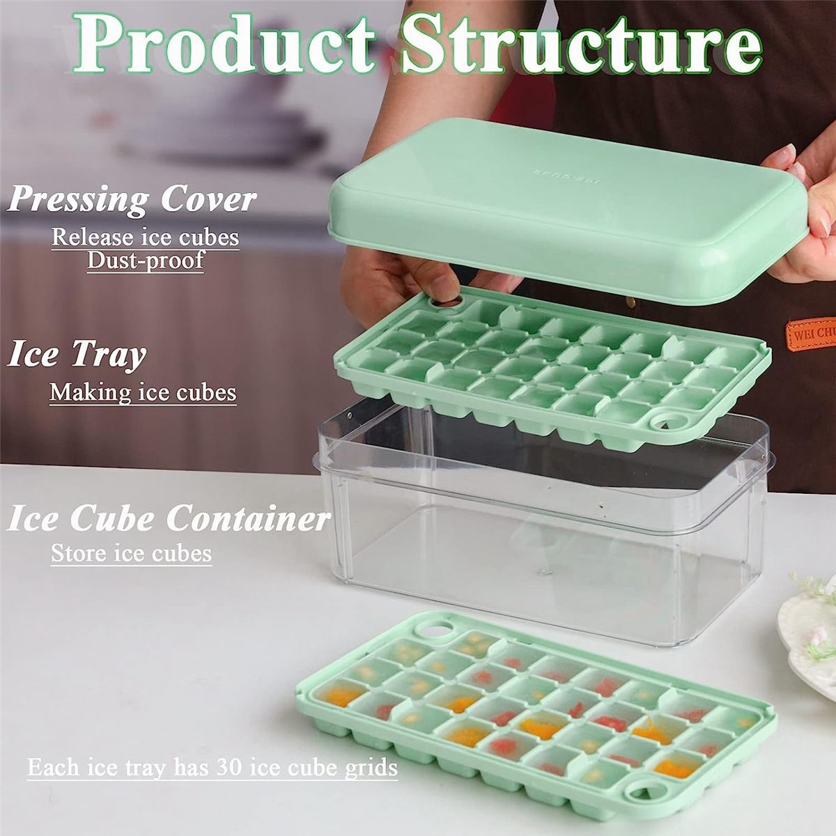 Safe Material: The ice cube maker for freezer made of safe material, free, odorless and . The ice cube tray with lid is safe and durable. Enjoy summer coolness , perfect for using , parties, whisky and bars, etc.