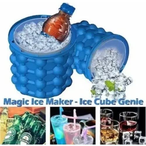 Do your ice cube trays get much of the space of your freezer? Yet it is difficult to turn and swivel and just to get the ice cubes out. Now the Ice Cube Genie is much easier for this.Silicone Ice Cube Maker Bucket Revolutionary Space Saving Holds up to 120 ice cubes with unique double chamber designIts double chamber design is what makes it special. Outer chambers freeze the ice cubes while inner cylinder stores themSimply fill and chill Fill the outer chamber with water then lift up the inner cylinder and squeeze out the cubes into the bucket and their ready to use Then just refill and freeze again for another batch of ice cubesSuitable for Many Place and Drinks -- Use for indoor refrigerator, Vehicle refrigerator or outdoor mini refrigerator, Suitable for parties, weddings, dinner parties, picnics, and moreIce Genie cube makers will save a lot of space for your freezers and keep your cubes fresh and odorless, with airtight covers