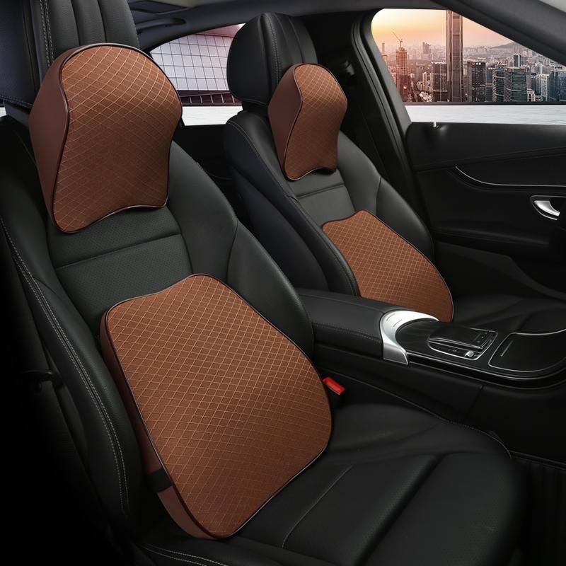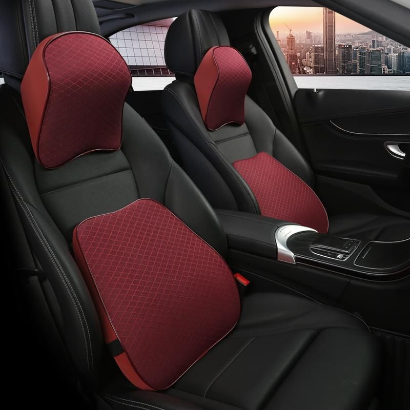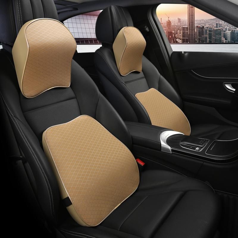 Buy Ice Silk Leather Car Neck Pillow Memory Foam Auto Rear Seat Back Headrest Lumbar Supports Travel Cushion Cover Auto Accessories in Nigeria