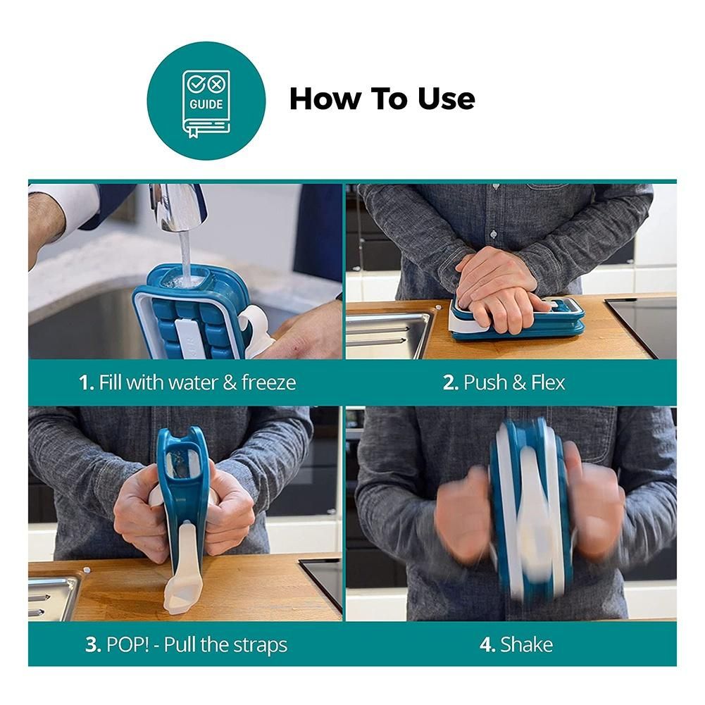 INNOVATIVE & REVOLUTIONARY DESIGN - Our ice trays for freezer is easy to use. Simply fill it as you would a water bottle, put it in the fridge, break the ice, take off the lid, pull the straps, and serve the ice with ease. The new way of making ice with freezer trays.